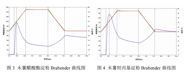 目前用于其中的變性淀粉類型以醋酸酯化淀粉占主導(dǎo),粘度曲線如圖 3,并 有向醚化類淀粉轉(zhuǎn)變的趨勢,粘度曲線如圖 4。根據(jù)不同的面制品品種,淀粉添 加量在 5~20%之間波動(dòng)?,F(xiàn)將不同面制品對淀粉的要求敘述如下。