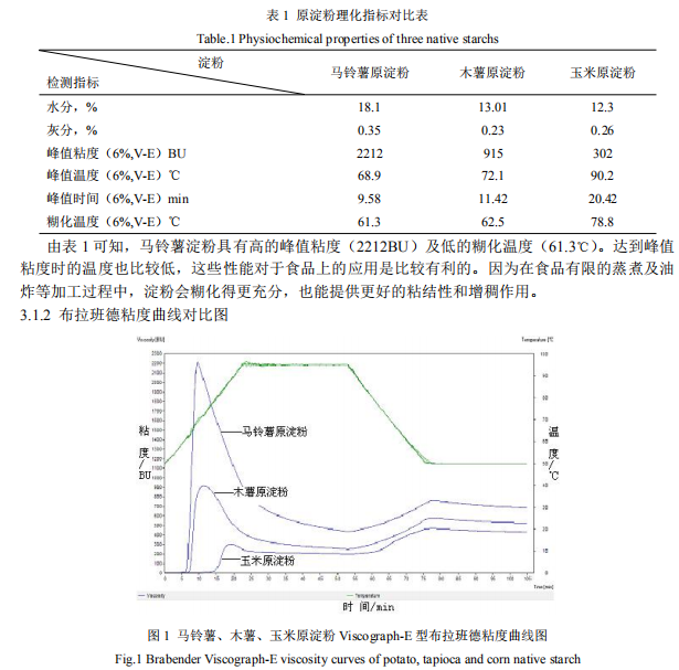 木薯原淀粉,廣西明陽生化科技股份有限公司;玉米原淀粉,長春大成公司;馬鈴薯原粉, 云南法者精淀粉公司。