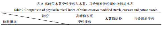 3.2 高峰值木薯變性淀粉與原淀粉檢測數(shù)據(jù)對比分析