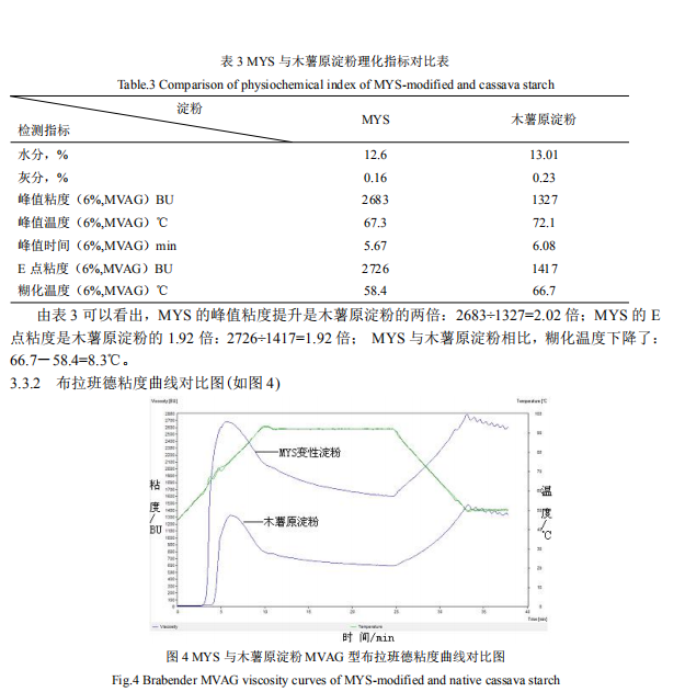 (7)MYS 與木薯原淀粉峰值粘度對比:2683÷1327=2.02 倍;