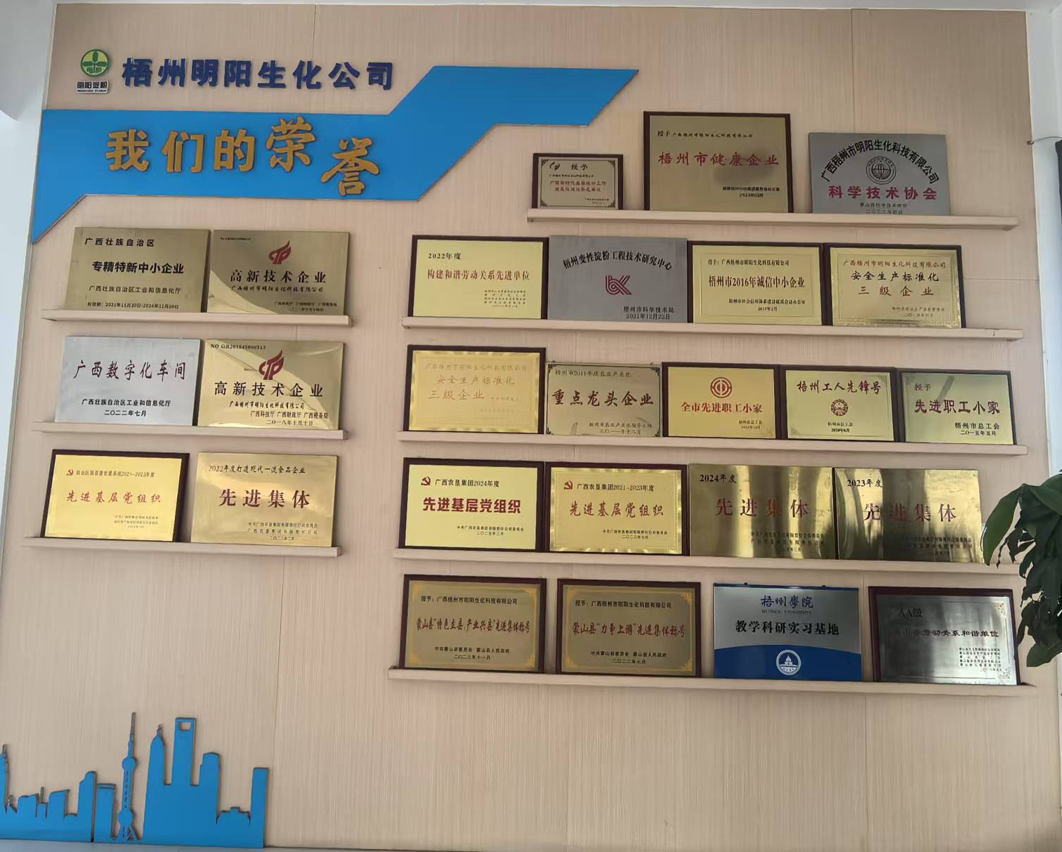 (▲梧州明陽(yáng)生化公司榮譽(yù)墻)