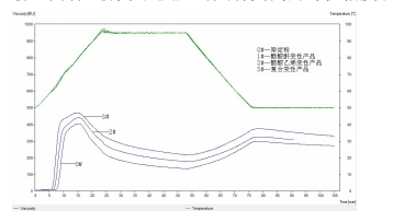 圖 2 醋酸酯淀粉 Brabender 粘度曲線對比圖