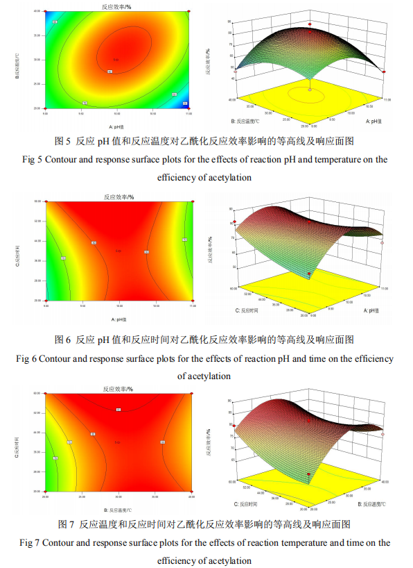 【概要描述】使用乙酸乙烯酯為乙?;噭?,考察三聚磷酸鈉(STPP)對(duì)醋酸酯淀粉性能的影響,并通過(guò)響應(yīng)面設(shè)計(jì)優(yōu)化實(shí)驗(yàn)方案。結(jié)果表明,添加3%STPP制備的醋酸酯淀粉,反應(yīng)效率同比增加25.95%;采用三因素三水平的Box-Behnken響應(yīng)面試驗(yàn)設(shè)計(jì)方法,考察反應(yīng)pH值、反應(yīng)溫度、反應(yīng)時(shí)間對(duì)醋酸酯淀粉反應(yīng)效率的影響,結(jié)果顯示所得回歸模型顯著。